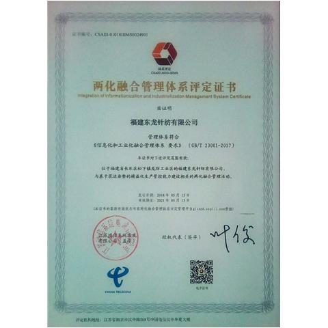 工信部?jī)苫诤瞎芾眢w系評(píng)定證書(shū)
