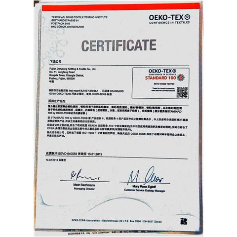 瑞士OEKO-TEX STANDARD 100生態(tài)紡織品認(rèn)證證書(shū)