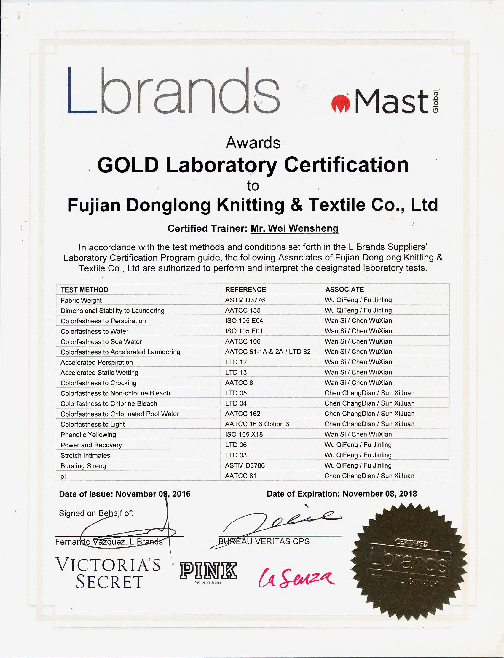 BV金牌實驗室認證證書/2018-09-04